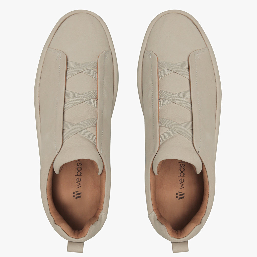 O design minimalista ganha destaque pelo elástico discreto na parte superior, que substitui os cadarços e proporciona praticidade no calce. A sola lateral é revestida no mesmo couro do cabedal, criando um visual contínuo e elegante.